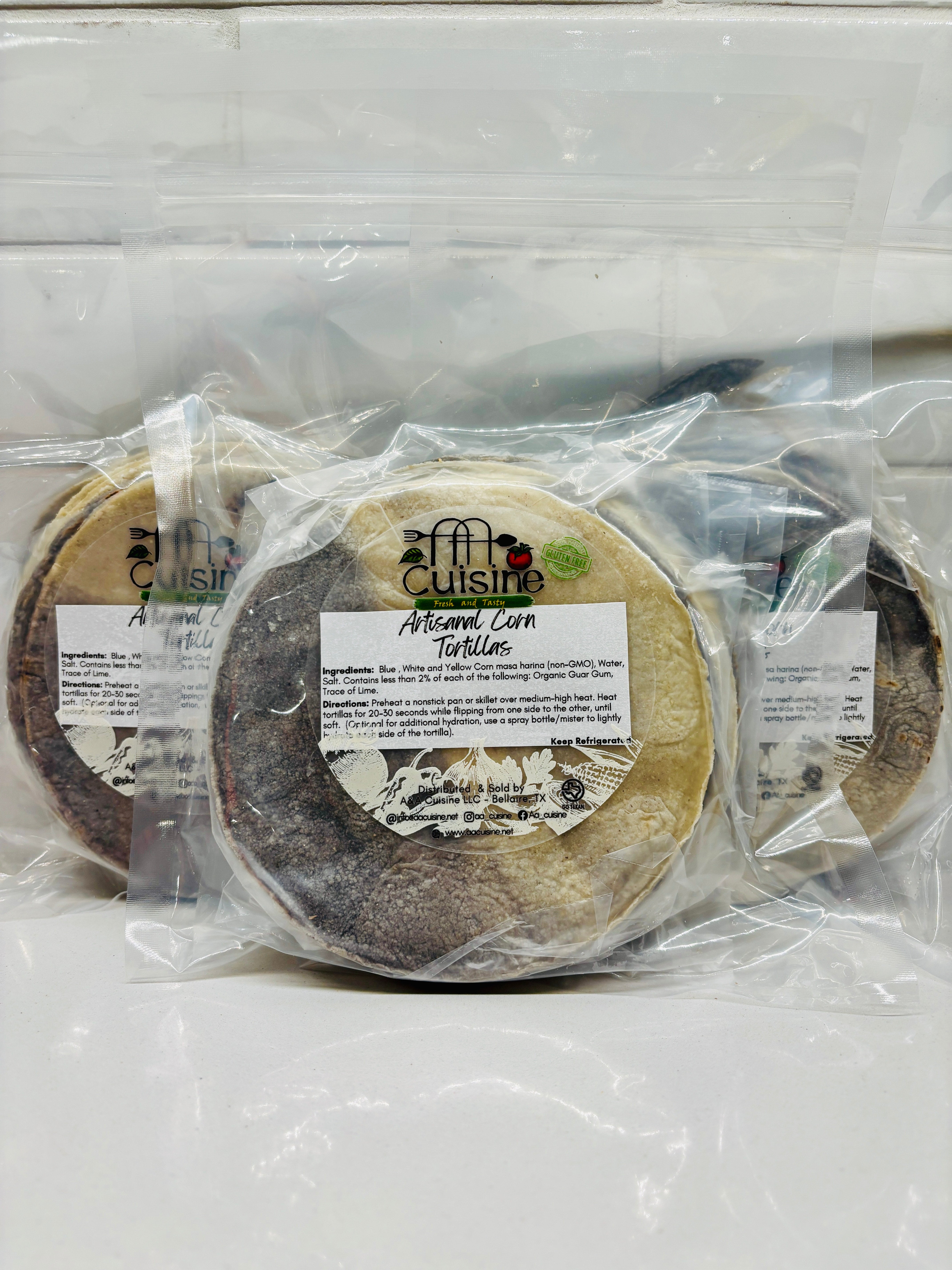 Our corn tortillas are made from NON-GMO corn, featuring two distinct colors: blue and white, derived directly from the corn itself.